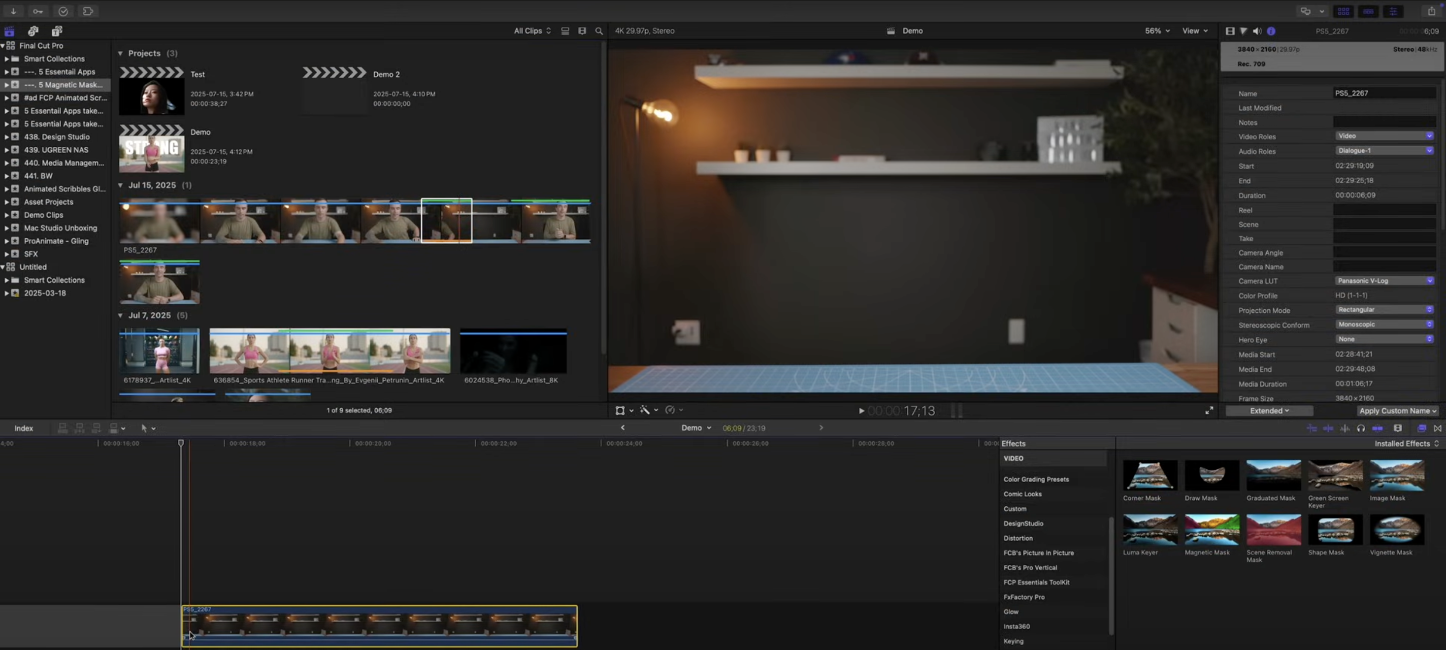 Magnetic Timeline: ripple-safe edits with connected clips and compound clips for clean structures.